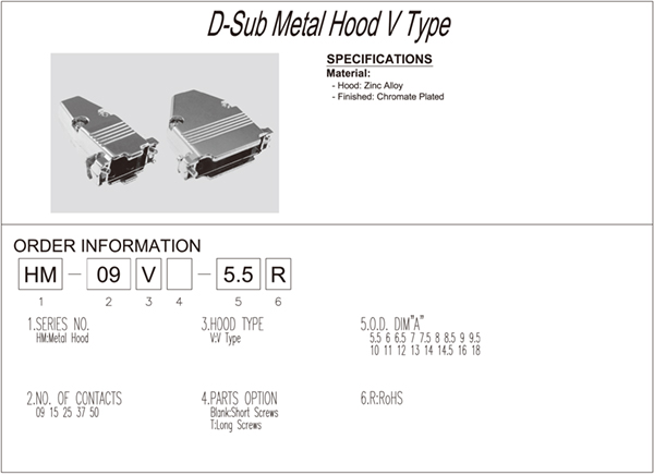 >Input/Output > Hoods & Accessories > D-Sub Metal Hood V Type